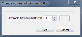 If you have Windows 7, to change the core allocation, first click the Set on target button and the following window will pop up: