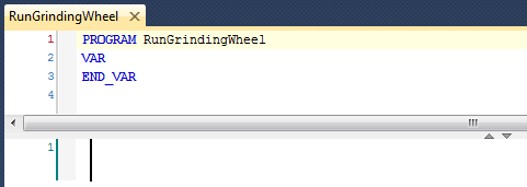 Let’s assume we’re going to program a grinding machine. Perhaps there’s a grinding wheel that needs to be turned on and off via a motor starter. Let’s start by declaring some variables for our PLC to interface with the outside world.